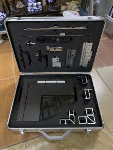Cắt khối mút bên trong để chứa phụ kiện, dụng cụ thiết bị chính là điểm nhấn đáng chú ý nhất của vali nhôm. Chúng tôi sẽ cần bạn cung cấp kích thước và hình dáng của phụ kiện cửa nhôm kính như các mẫu góc, mẫu bản lề, mẫu khóa, mẫu tay nắm…, sẽ lên layout bản vẽ cắt mút. Khi các bạn đã duyệt layout, chúng tôi sẽ tiến hành thi công cắt mút CNC khối mút xốp bên trong. Quá trình này thực hiện xong, sẽ được dán vào phía trong vali nhôm, hoàn thiện những công đoạn cuối cùng.